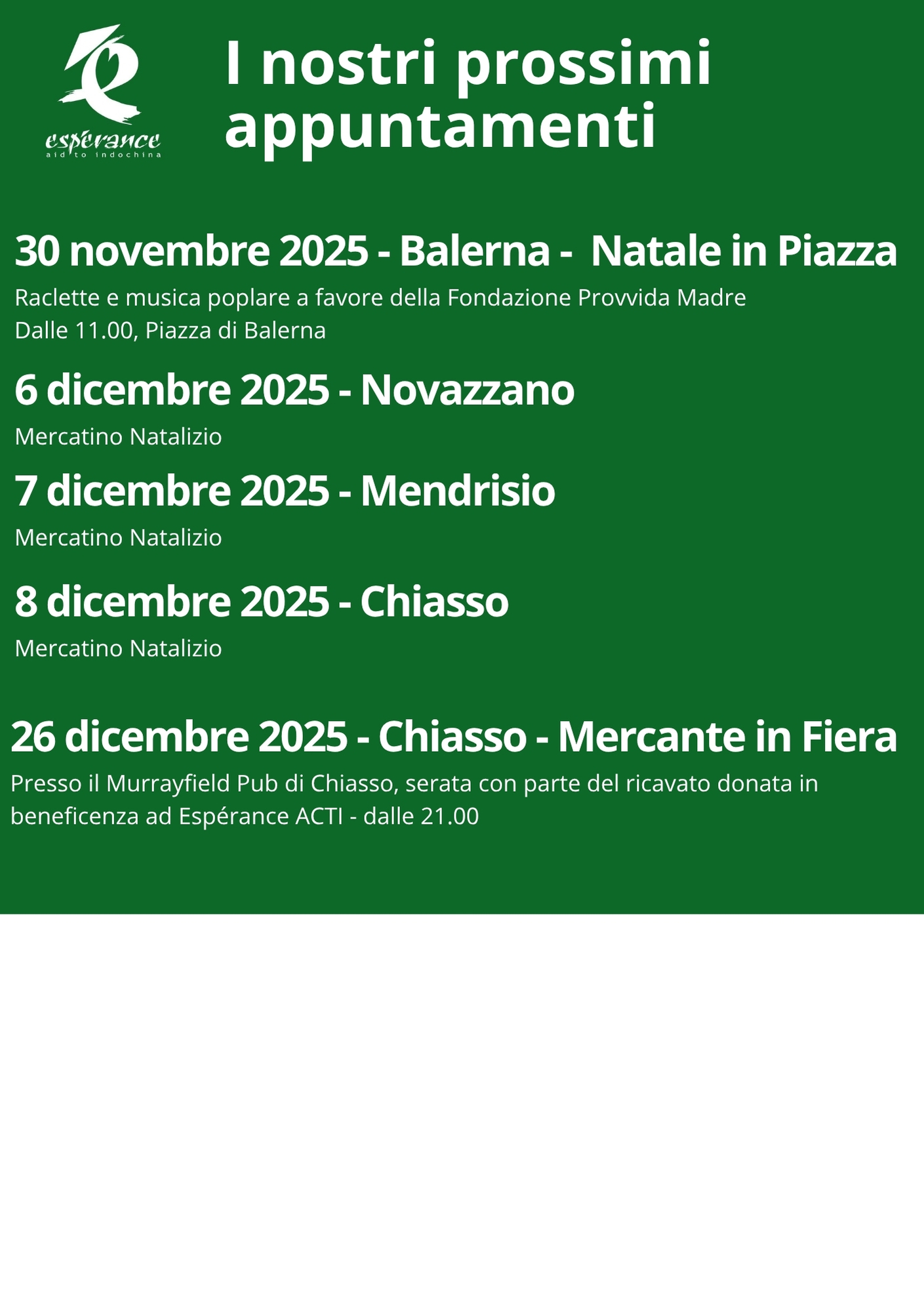 Vi aspettiamo numerosi domenica 30 novembre 2025, a Balerna, per un pranzo succulento a base di raclette e musica popolare dal vivo con la San_martin_elastik_bandela. Tutto il ricavato andrà a favore delle attività della Fondazione Provvida Madre.